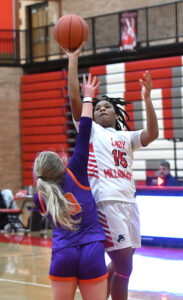 By halftime, Williamsport led 25-13 and Helmrich played a huge part in expanding the score with two 3-pointers and two foul shots. Laylah Martin scored two from the foul line as well. Amelia Hoffman from the Danville Ironmen also scored one two-pointer, but it wasn’t enough to put Danville in the lead.