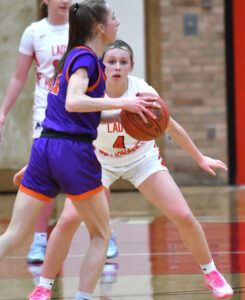 - MARK NANCE/Sun-Gazette Correspondent Williamsport’s Kensley Cannode (4) keeps an eye on Danville’s Cecelia Coombe (11) in the second quarter.