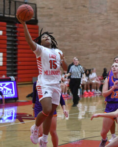 Even though Danville brought strong defense, Williamsport heightened its lead in the second half. Zaelana Minor, Clara Fabian, Martin — and of course Helmrich — all scored in the last two quarters Despite the only 3-pointers for the Millionaires being shot in the first half of the game, consistent baskets from inside the arc and shots made from the foul line carried the team into 34-19 lead after the third.