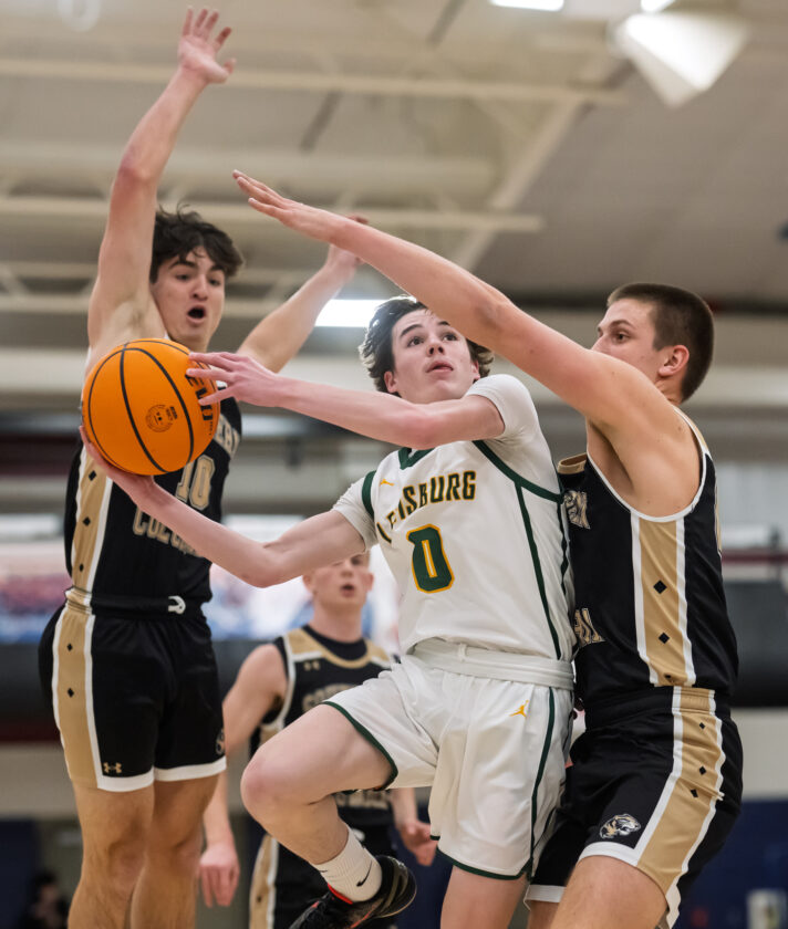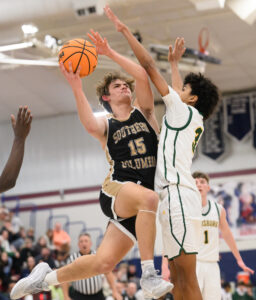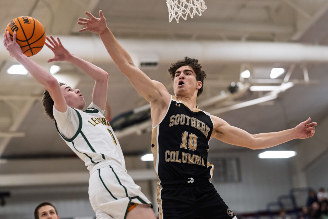 - FRANK DIMON/Special to the Sun-Gazette Lewisburg’s Cortland Michaels drives to the basket against Southern’s Ben Gehret.