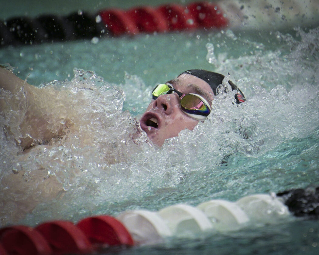 - RALPH WILSON/Sun-Gazette Correspondent Williamsport’s Cooper Allmaras competes in the 200 Medley Relay during a high school swim tri-meet with Wellsboro and Danville at Williamsport on Tuesday.