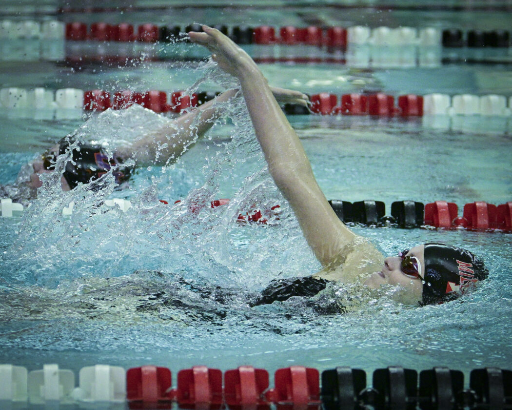 - RALPH WILSON/Sun-Gazette Correspondent Williamsport’s Addison Hill competes in the 200 Medley Relay during a high school swim tri-meet with Wellsboro and Danville at Williamsport on Tuesday.