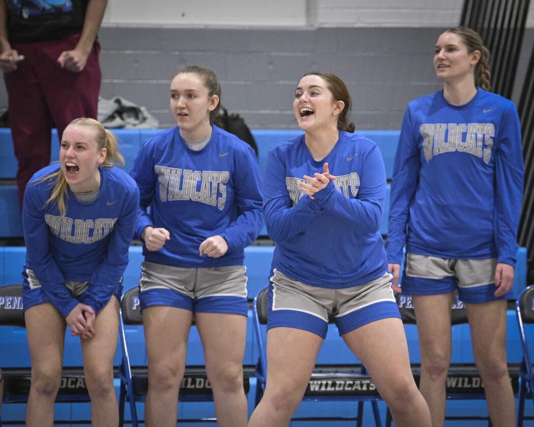 - RALPH WILSON/Sun-Gazette Correspondent Penn College players react during the United East semifinal game against PS Abington on Wednesday at Bardo Gym. PS Abington won 67-62.