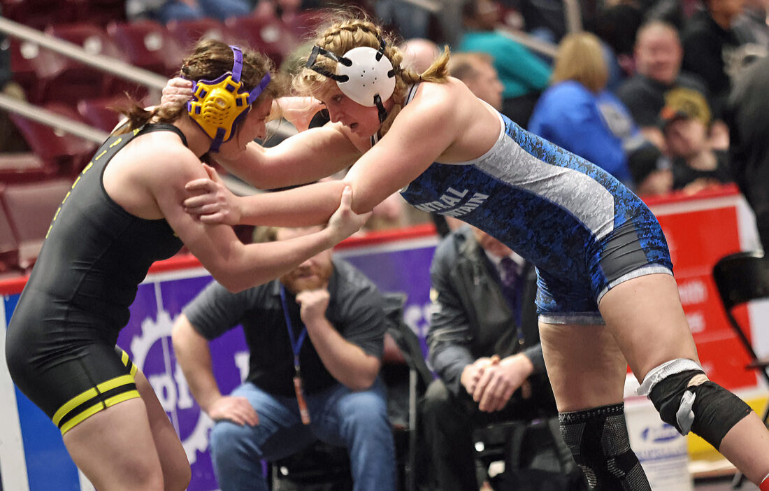 - CHRIS MANNING/Sun-Gazette Correspondent Central Mountain’s Kendall Wagner competes in the PIAA girls wrestling championships in Friday’s quarterfinals in the morning session.