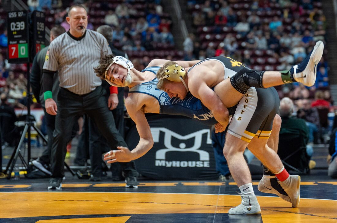 His losses came by a combined deficit three, the first of which came against to a wrestler ranked No. 5 in the country in Bishop McDevitt’s Camden Baum. And his three wins came against studs, most notably defeating returning state medalist Drake McClure (Bentworth) by 2-1 decision.