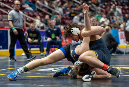 HERSHEY – The moment his consolation bout reached its final minute of regulation, Montoursville junior Hayden Harvey was dealt an additional obstacle. On top of a tough matchup that sat tied at 1-1, an inherent swipe from Northwestern Lehigh’s Luke Fugazzotto caught his eye.