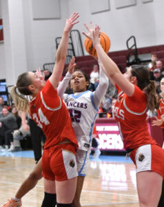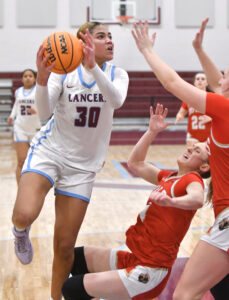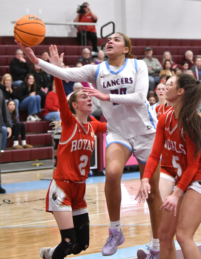 Dadzie and Baroway combined for the next five points to cut the deficit back to 55-50 with 2:31 left, and the Lancers forced a turnover down just four with 30 seconds left in the game with a chance to cut into the lead further. But a turnover doomed the run. Moments later, they failed to rebound a missed foul shot after the Royals came up empty at the line, and found themselves down six as time ticked away to end their season and the high school careers of seniors Alaina Dadzie, Jill Kennedy Addie Bastian, Madison Wertz, and Jaekirah Harden.