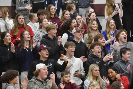MARK NANCE/Sun-Gazette Correspondent Loyalsock fans cheer on their girls basketball team as they take on Holy Cross in the first round of the PIAA play-offs.