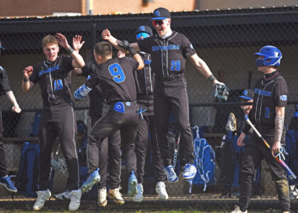 - LARRY DEKLINSKI/Special to the Sun-Gazette Warrior Run players celebrate a home run by Cohen Zechman during Tuesday’s game at Southern.