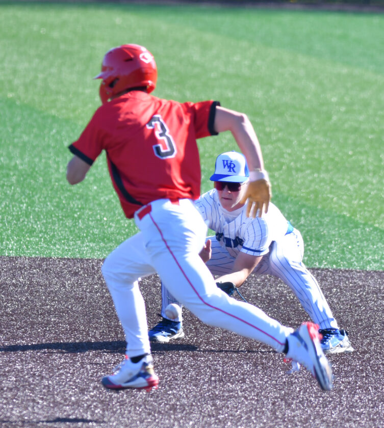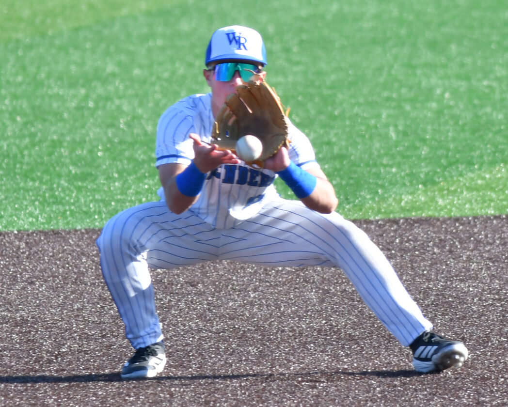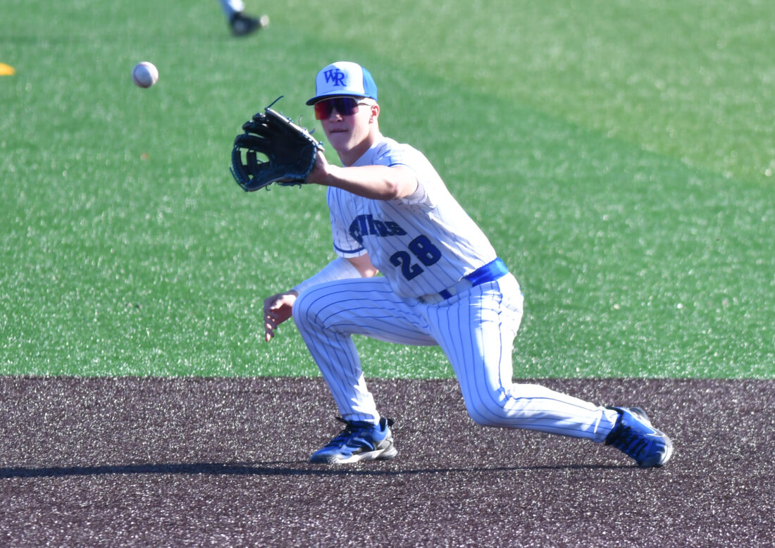MARK NANCE/Sun-Gazette Correspondent Warrior Run second baseman Tyler Ulrich (28) fields a line drive for an out in the third inning.