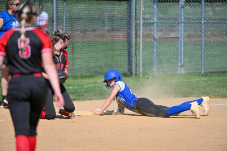 - TIM WEIGHT/Special to the Sun-Gazette Central Mountain’s Camdyn Weaver slides for third during a softball game against DuBois on Friday at Bellefonte. The Wildcats won 6-3.