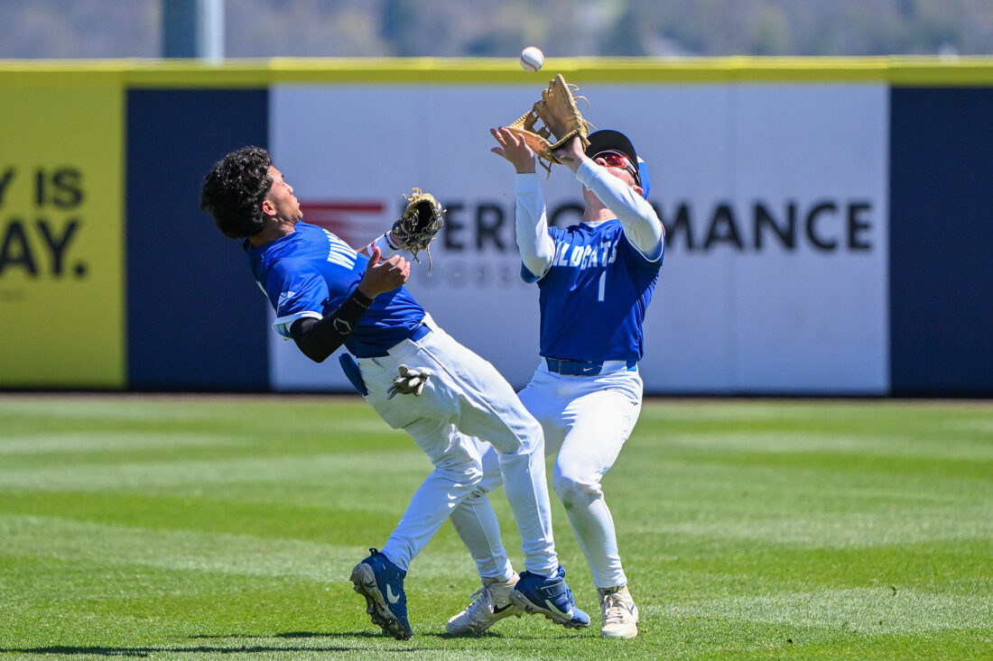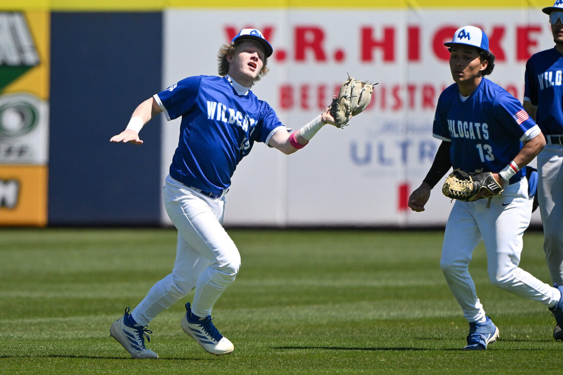 - TIM WEIGHT/Special to the Sun-Gazette Central Mountain’s Miller Hayes (1) reels in an out and attempts to avoid a collision during a Happy Valley Baseball Classic matchup against State College on Saturday, April 11, 2026, at Medlar Field in State College. the Wildcats won 6-5 in eight innings.