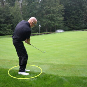 It is a very simple motion, similar to a door opening and closing. The golf club just stays in front of the chest, and the rotation continues through the hitting area and beyond. Don’t allow the hands to dominate the chest is in charge. Distance is controlled by how much the chest rotates.