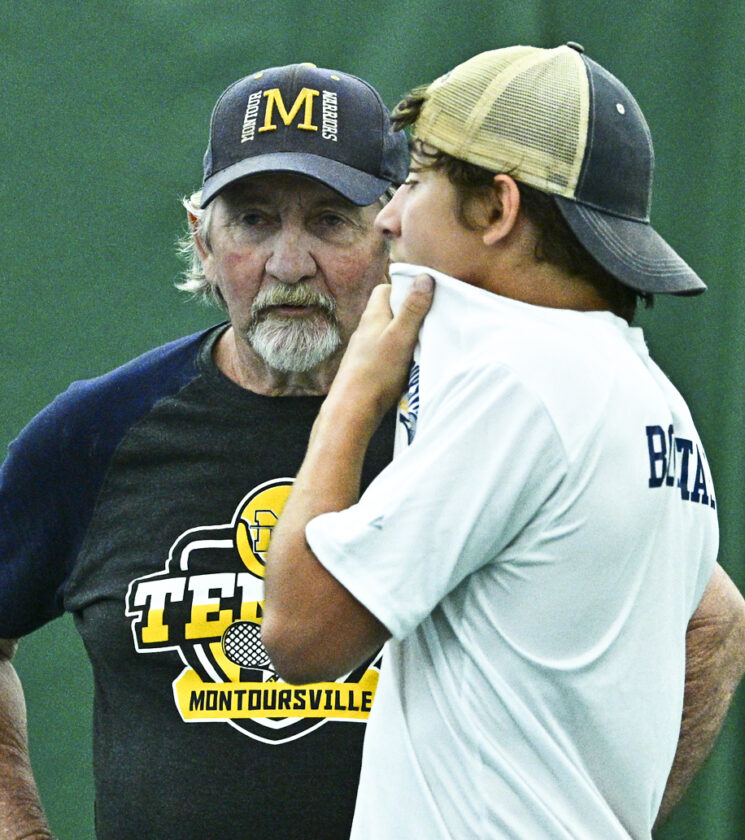 - RALPH WILSON/Sun-Gazette Correspondent Montoursville coach Shawn Gardener meets with Teli Bobotas at the end of the semifinal round of PIAA District 4 Class AA boys tennis singles at the Central PA Tennis Club in South Williamsport on Thursday, May 8, 2025.