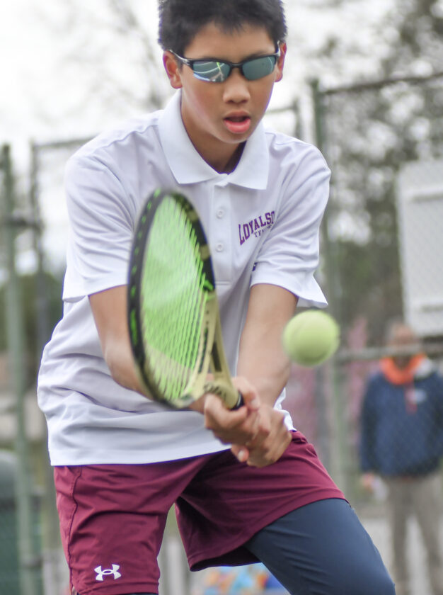 At No. 1 singles, Loyalsock’s Elijah Lin dominated against Corbin Basile of Galeton. Lin routinely placed well-executed serves and returns out of Basile’s reach, using his power to his advantage on hits.
