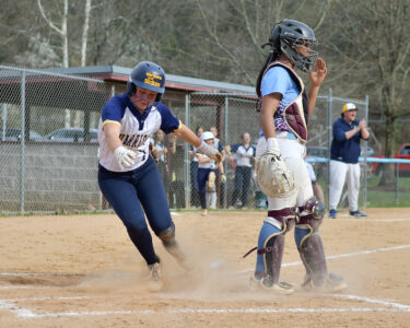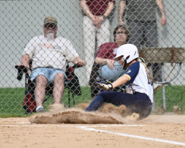 - RALPH WILSON/Sun-Gazette Correspondent Montoursville’s Karsyn Stone (16) scores on a wild pitch during a high school softball game against Loyalsock at Short Park on Tuesday.