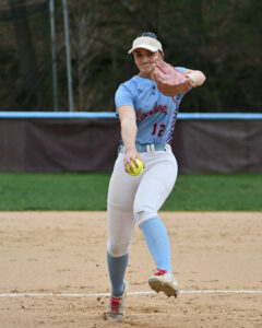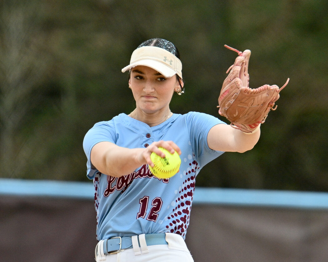 - RALPH WILSON/Sun-Gazette Correspondent Loyalsock’s Sophia Miller (18) takes over in the circle during a high school softball game against Montoursville at Short Park on Tuesday.