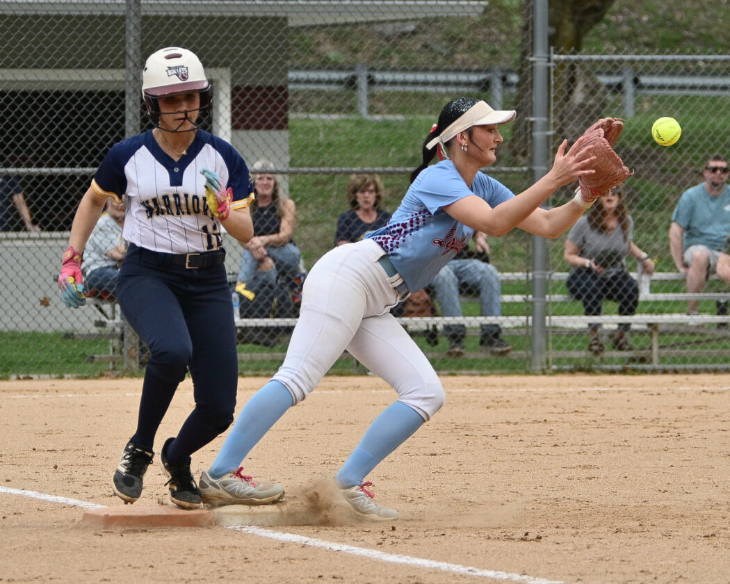 The visiting team has won this rivalry game the last five times and Montoursville wasted little time building toward continuing that script. The Warriors took advantage of two errors, four wild pitches and Yonkin belted a two-run single to build a 7-0 lead. Belle helped start the rally with a single and March Manotti drove in the first two of her two runs as Montoursville immediately took the wind from Loyalsock’s sails.