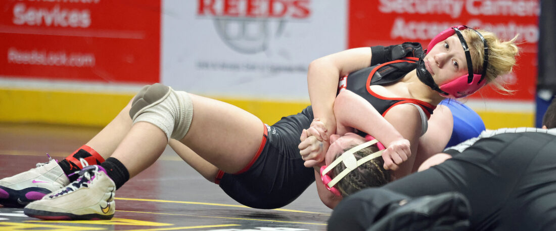 DAVE KENNEDY/Sun-Gazette Williamsport’s Lillian Rumsey took home bronze this year at the state tournament in girls wrestling at Hershey. Rumsey (118 pounds) was named runner-up for Wrestler of the Year honors behind Montgomery’s Zoe Furman.