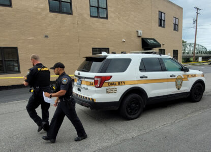 - Tiadaghton Valley Regional police officer enters the Jersey Shore State Bank on Main Street in Jersey Shore with equipment to process robbery scene. PHIL HOLMES/Sun-Gazette
