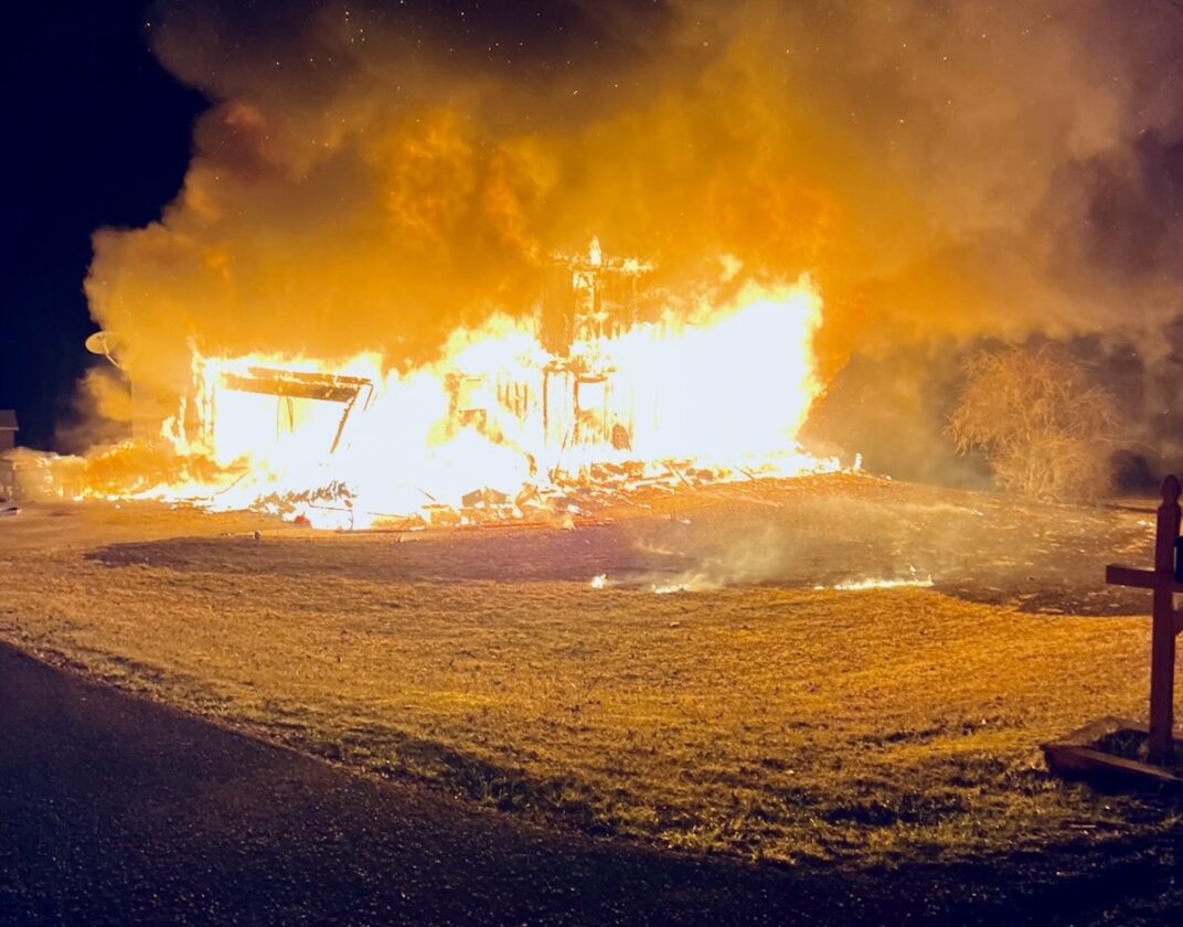 Water to fight the blaze was shuttled to the scene by tankers that drafted from a pond four to five miles away.