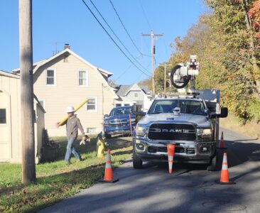 Much of Newberry and parts of Old Lycoming Township were without electrical service for about an hour when a power line snapped and came down on two vehicles in the 2200 block of Hillside Drive about 8 a.m. Saturday, according to city fire officials.