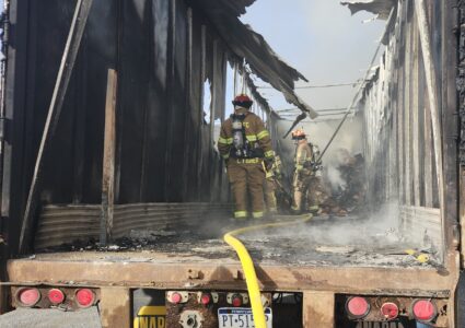 “One of the trailers was three-quarters full of cardboard,” said Casey Parker, township assistant fire chief, who credited Bryson employees with quickly moving one of the burning trailers away from the garage and office.