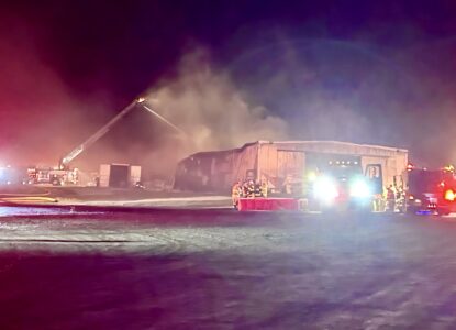MILDRED – A massive early-morning blaze Tuesday that destroyed a very large Dushore Agway warehouse on Route 220 was fought by 70-plus volunteer firefighters for nearly two hours before it was brought under control, according to Mildred Fire Chief Sean Thibodeault.