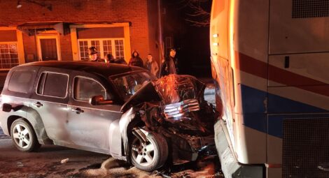 McDonnell was heading west when he plowed into the back of a stopped River Valley Transit Authority bus, city police said. The bus driver and the two passengers on board were not injured, police said.