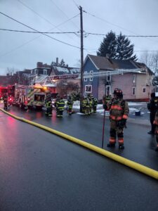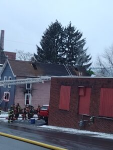 - Firefighters work at the scene of a house fire on Rose Street on Wednesday. D. EVERETT SMITH/Sun-Gazette Correspondent