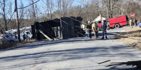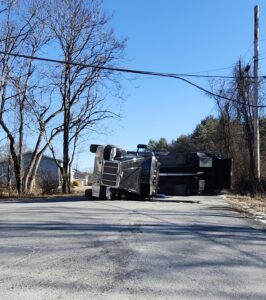 After unloading dirt or shale, the dump truck driver pulled out of a driveway at the top to Round Hill Road unaware that the truck’s bed was still raised, police and city firefighters said.