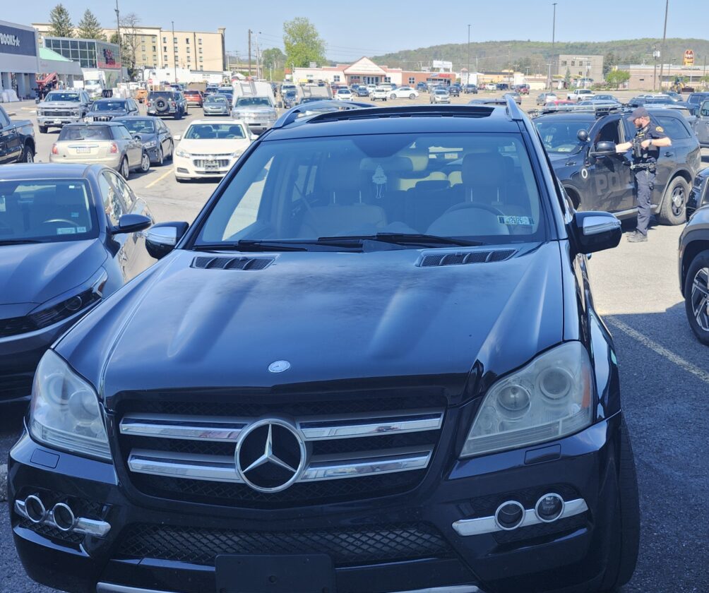 A city police pursuit involving this Mercedes-Benz on Thursday morning ended here in the T.J.Maxx Plaza in Loyalsock Township. The driver, wanted by county probation, was taken into custody and his SUV was impounded, police said.PHILIP HOLMES/Sun-Gazette